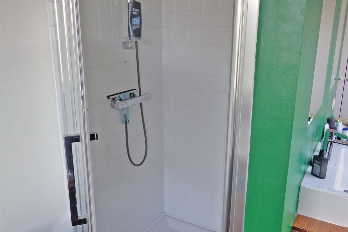 De open ruime leefruimte, keuken, badkamer en terras bevinden zich op het eerste verdiep van waaruit er een ruim zicht is op de achterliggende tuin en open ruimte. De 3 slaapkamers, waarvan 2 met een mezzanine en het aparte toilet bevinden zich op de 2de verdieping.